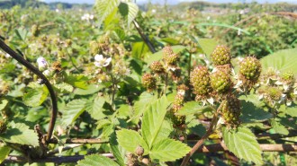自然の恵み・太陽に感謝!果実も少しずつ熟してきて、黒い実もちらほら。収穫まであと少し。