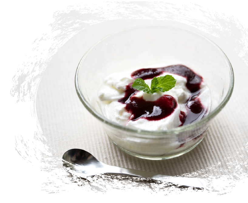 ヨーグルトの優しい味わいに甘酸っぱいブラックべリーソースがマッチします!ヨーグルトの苦手な方もこれなら食べられるかも!?