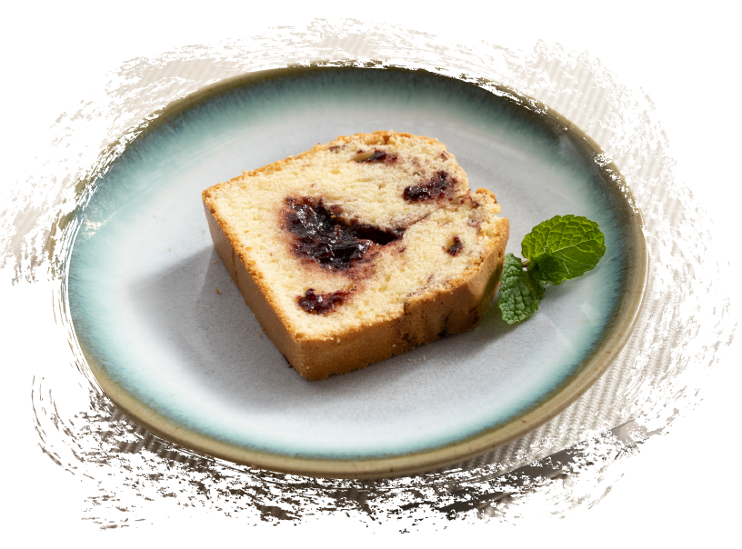 ソースやジャムをケーキの生地に混ぜ込めば簡単ブラックベリー風味のパウンドケーキの出来上がり!